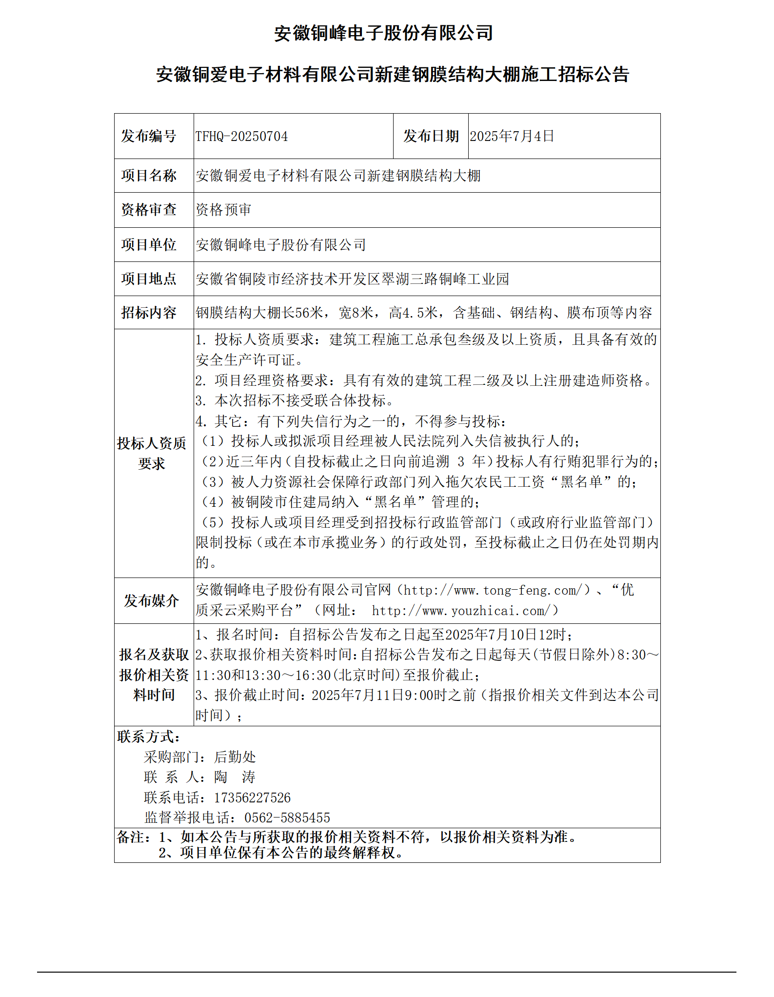 安徽銅峰電子股份有限公司 (安徽銅愛(ài)電子材料有限公司新建鋼膜結(jié)構(gòu)大棚招標(biāo)公告)_01