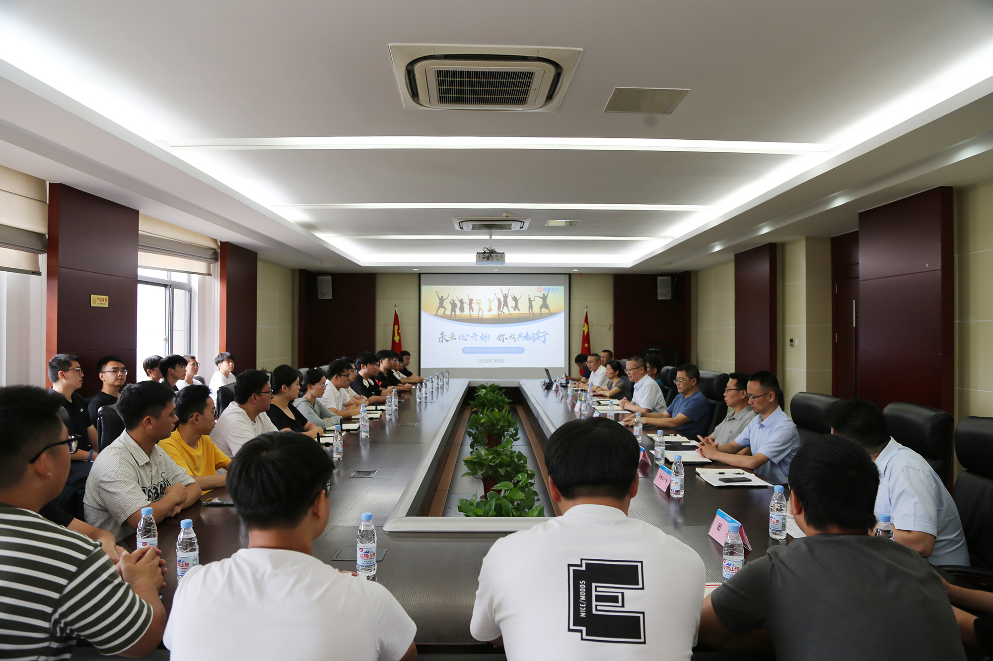 7月9日上午,公司于辦公樓一樓會議室舉辦2024年新進大學生入職儀式,黃明強、儲松潮、郭傳紅、潘世宇、李駿、何曉明、潘焱堯等在銅公司黨政領導班子成員,公司人力資源處、黨群工作部、團委等部門負責人和27名新進大學生共同出席了入職儀式。