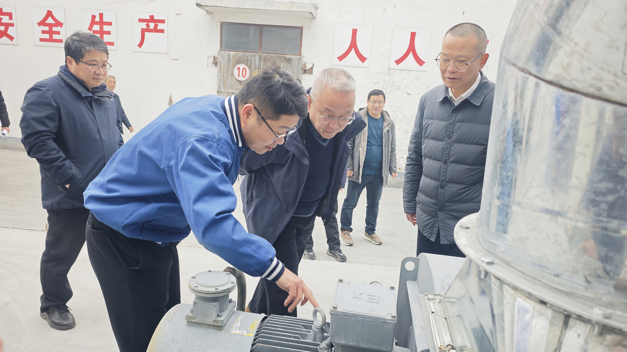 謝永明一行來到電容器分公司交流一線噴金工序外部專用收塵設(shè)施,認(rèn)真了解裝置運行和安全報警系統(tǒng)、應(yīng)急救援設(shè)施、靜電防護(hù)等安全設(shè)施運行維護(hù)情況,并聽取公司領(lǐng)導(dǎo)和有關(guān)負(fù)責(zé)人關(guān)于安全環(huán)保措施落實、隱患排查治理等情況的匯報。