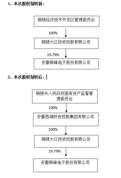 為優(yōu)化國有資產(chǎn)配置,經(jīng)銅陵市人民政府批準(zhǔn),擬將本公司實際控制人銅陵經(jīng)濟(jì)技術(shù)開發(fā)區(qū)管理委員會持有的控股股東銅陵大江投資控股有限公司100%股權(quán)劃轉(zhuǎn)至安徽西湖投資控股集團(tuán)有限公司,本次股權(quán)劃股權(quán)劃轉(zhuǎn)事項尚需辦理工商變更手續(xù)。本次股權(quán)劃劃轉(zhuǎn)不觸及要約收購。
